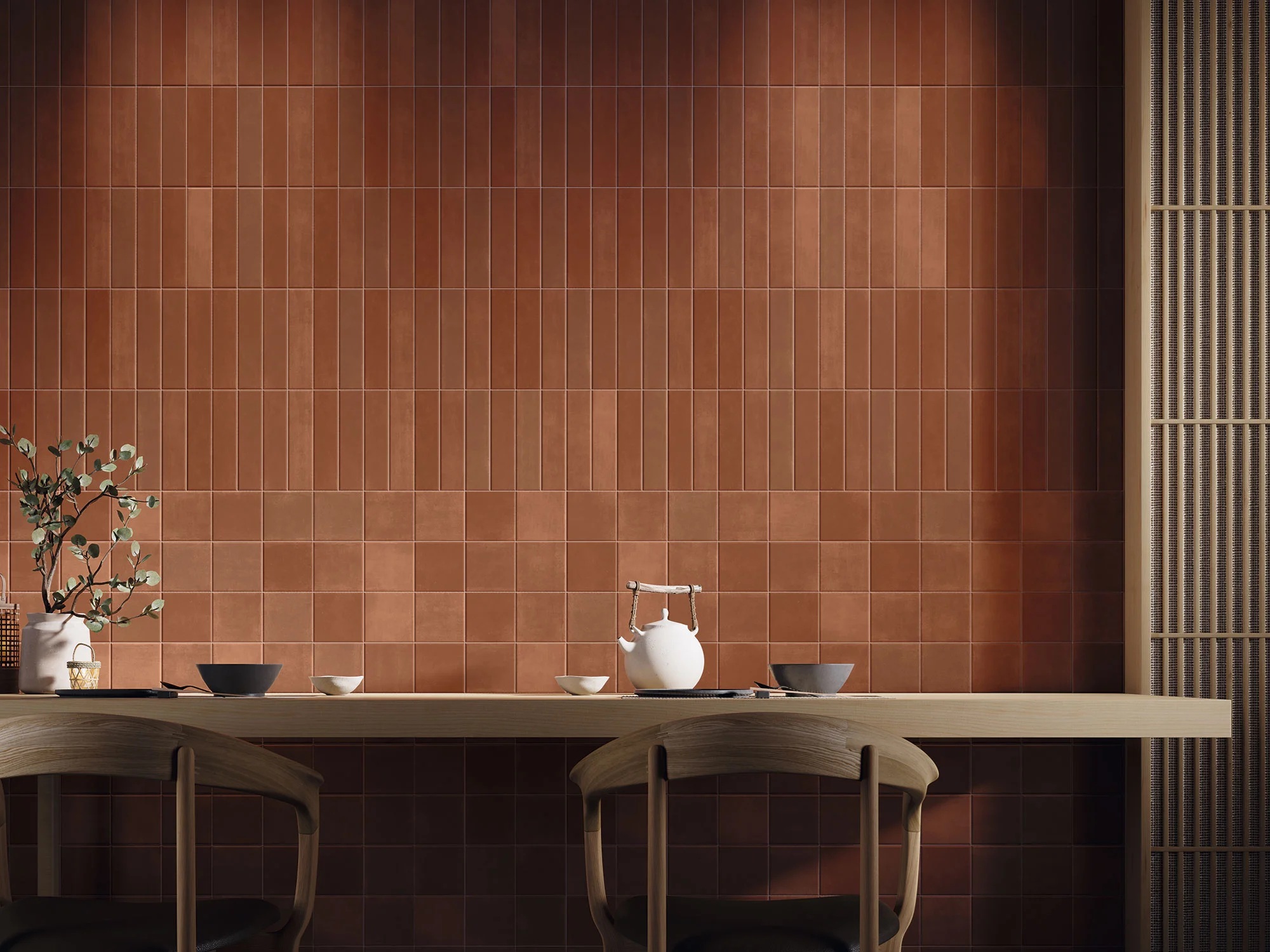 De tegel is ideaal als achterwand in de keuken, in de badkamer of het toilet, maar kan ook mooi gebruikt worden in een hal of bijkeuken voor een warm accent.