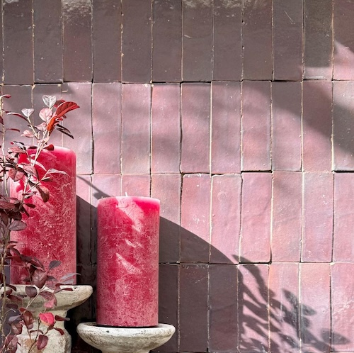 Bijzonder mooi deze glanzende aubergine geglazuurde BEJMAT tegels in de maat 5 x 15 cm.