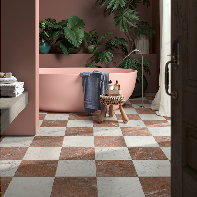 Voor het maken van een dambord, dient u de rood-bruine én de witte carrara tegels afzonderlijk te bestellen per kleur. Zie onder "bijpassende producten".