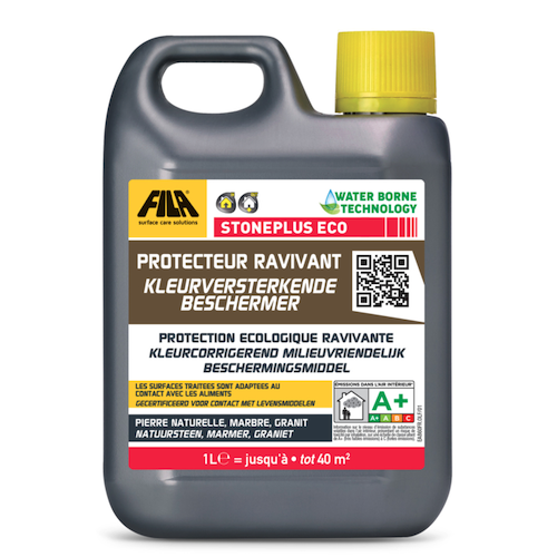 Dit middel geeft het leisteen & natuursteen een permanente donkere kleur en krijgt dezelfde look alsof het met water nat gemaakt is. Wilt u liever een natuurlijke uitstraling behouden en geen kleurverdieping, gebruik dan de FILA MP90 eco in plaats van de FILA stoneplus eco. Gebruik dus als stap 2 in de Natuur- en leisteenbehandeling de FILA MP90 eco of de FILA Stoneplus eco!