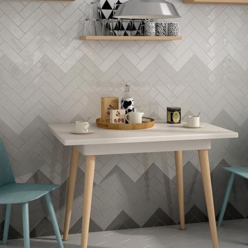 Prachtige kleur! Groen in een mooie zachte kleur, lcihtgrijs. In drie maten verkrijgbaar. Dit is de maat 13,2 x 40 cm, een mooie brick tegel. Waarmee in diverse patronen getegeld kan worden. Er gaan 19 tegels in een doos. Dit is 1,0 m2. Te bestellen per doos ofwel per m2.
