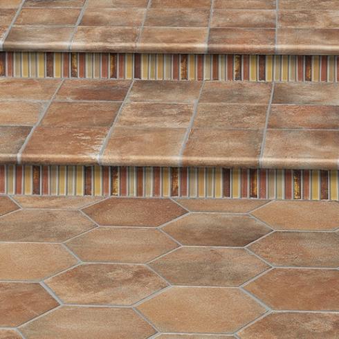 Mooie zeskantige hexagontegel in mat terracotta look in de rode uitvoering.