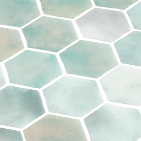 Bijzonder mooi een iets groter glasmozaiek XL in 5 x 5 cm hexagon, in een mooie zeegroen matte mix.