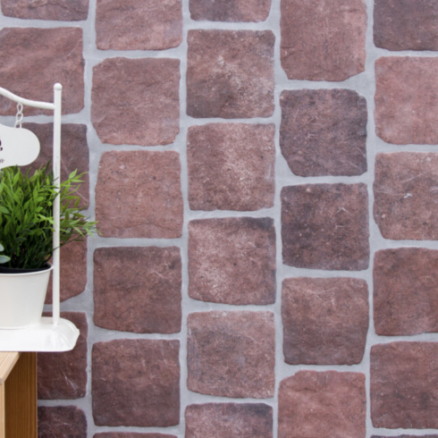 Uitstekend te gebruiken voor buiten en zeker ook mooi voor binnen. Dit is de perla, een donkerrode kasseienlook tegel.