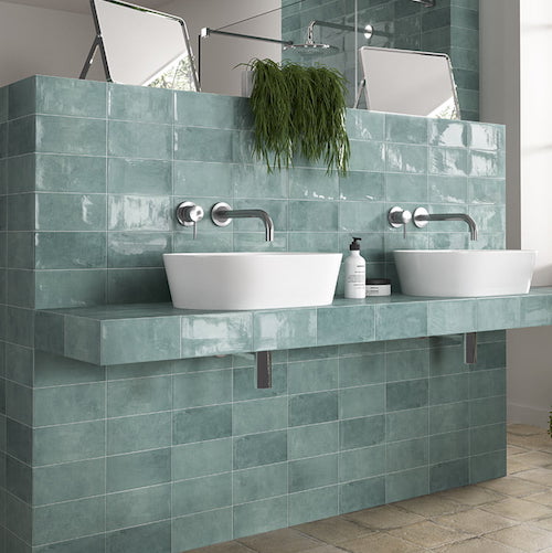 Mooie kleur groen deze groene wandtegel in de maat 10 x 20 cm. Er zit kleurvariatie tussen de verschillende tegels.