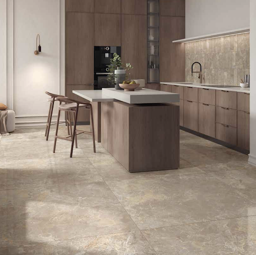 Een prachtig vloertegel met een stonelook naar een oud natuursteen uit Italië. Een keramische tegel in de gerectificeerde maat 60 x 120 cm voor een moderne inrichting.